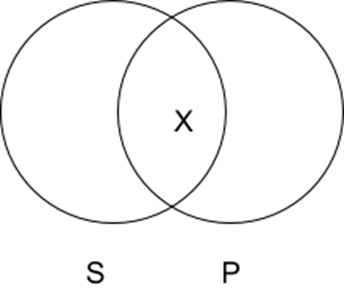 I Sentences: Some S are P; so, some P are S. An ‘x’ in the intersection of both circles.
