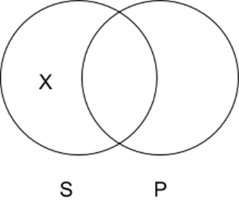 O Sentences: Some S are not P. An ‘X’ in the part of the circle for S where S does not intersect with P.