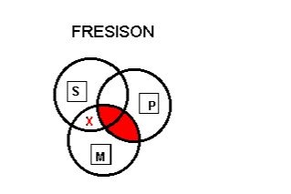 Modus Fresison: the intersetion of M and P is shaded, and there is an X where M and S intersect outside of P.